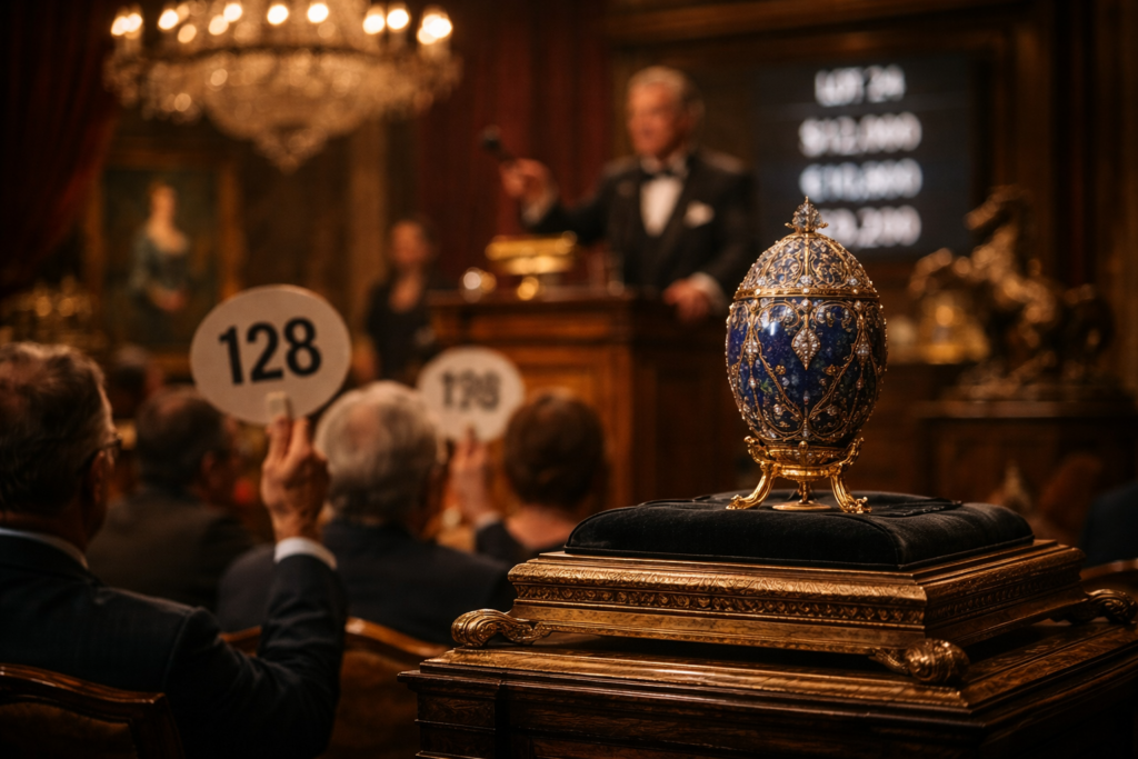 Jour J : Vente en salle avec enchères en ligne simultanées pour maximiser la concurrence.